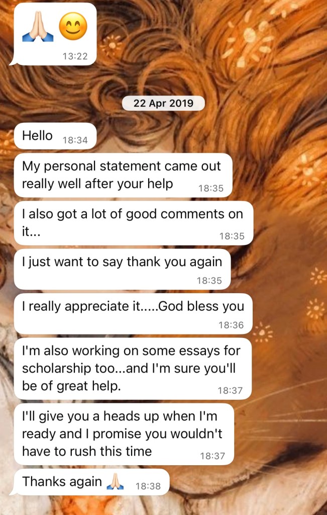 After a week of working together on clear, professional English writing, Chioma rewrote her statement of purpose and was confident enough to resume her application.